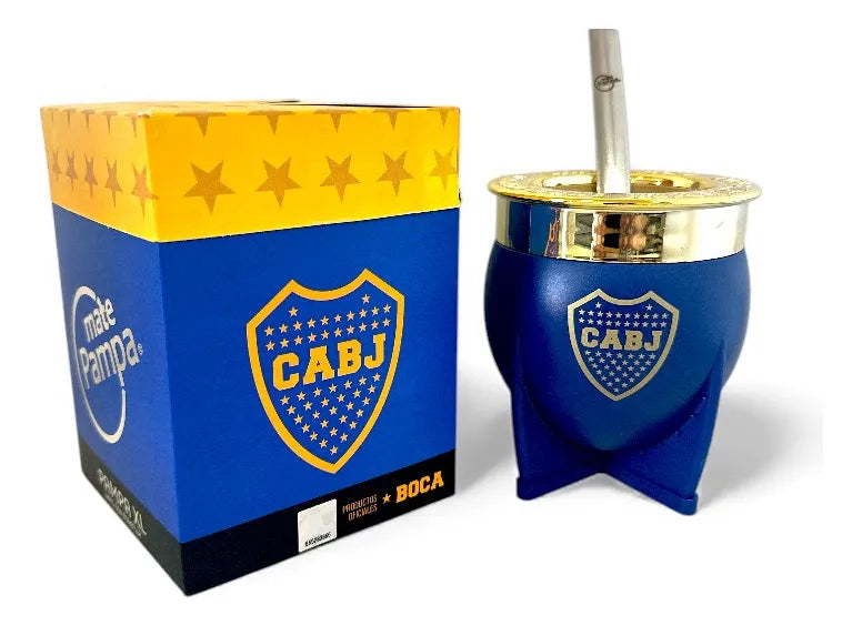 Mate Pampa XL Boca Juniors CABJ + Bombilla ESPECIFICACIONES - Marca: Mate Pampa - Modelo: Mate Pampa XL Boca Juniors - Térmico con cámara de aire - Fácil extracción de yerba - No necesita curado - No genera hongos - Super resistente - Fácil lavado - Duración de yerba sin lavarse - Dimensiones: 12 cm de Altura x 10 cm de Diámetro - Virola dorada y grabada " Club Atlético BocaJuniors Argentina" INCLUYE - Mate - Bombilla